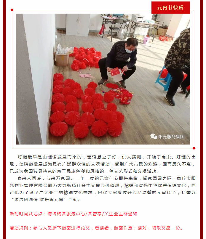 陽光物業(yè)“濃濃團圓情 歡樂鬧元宵 ”有獎猜燈謎活動預(yù)告