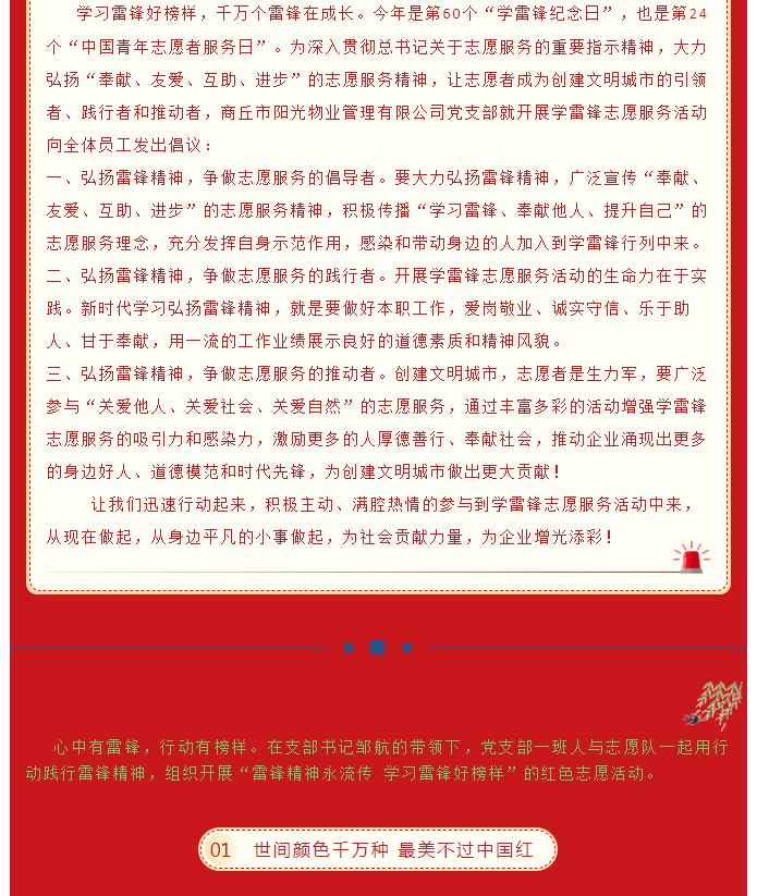 愛的傳承 | 陽光物業(yè)黨支部組織開展“雷鋒精神永流傳 學習雷鋒好榜樣”特別活動