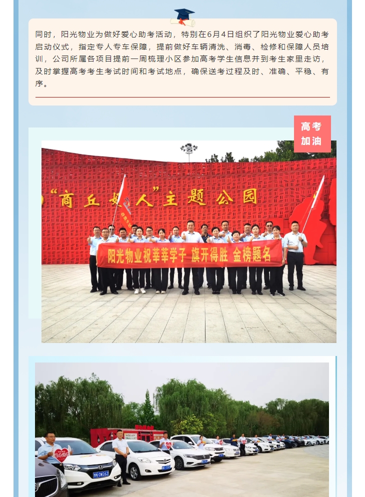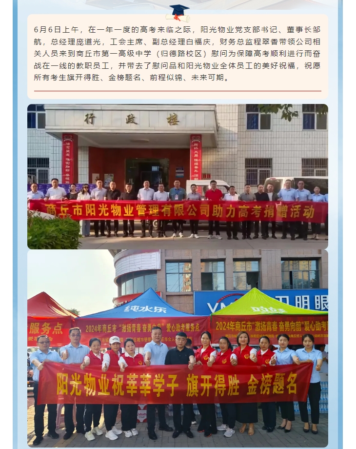 愛心助考|陽光物業(yè)慰問商丘市第一高級中學(xué)一線教職員工助力高考