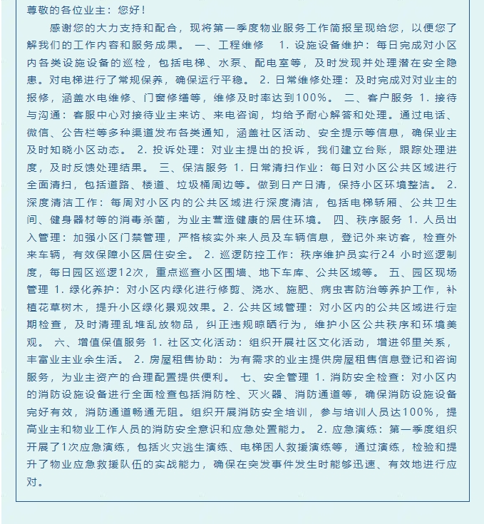 陽光服務|陽光物業(yè)第一季度服務簡報