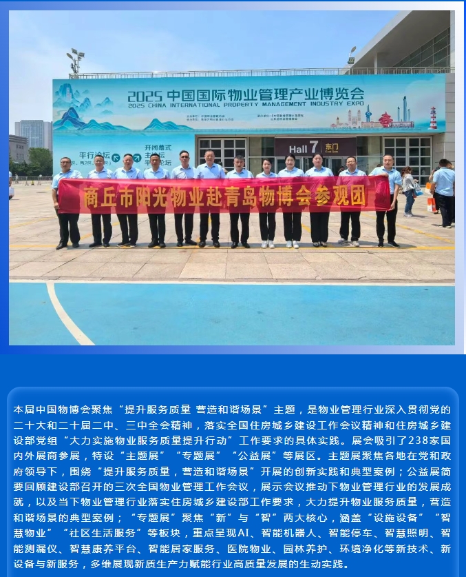 陽(yáng)光物業(yè)成立于2003年5月,專注物業(yè)服務(wù)行業(yè)20余載,陽(yáng)光物業(yè)現(xiàn)為河南省物業(yè)管理協(xié)會(huì)副會(huì)長(zhǎng)單位、商丘市物業(yè)管理協(xié)會(huì)副會(huì)長(zhǎng)單位,公司注冊(cè)資金1020萬(wàn)元,陽(yáng)光物業(yè)連續(xù)多年被河南省及商丘市評(píng)為先進(jìn)企業(yè)、優(yōu)秀企業(yè)。