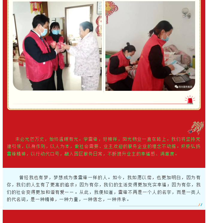 愛的傳承 | 陽光物業(yè)黨支部組織開展“雷鋒精神永流傳 學(xué)習(xí)雷鋒好榜樣”特別活動