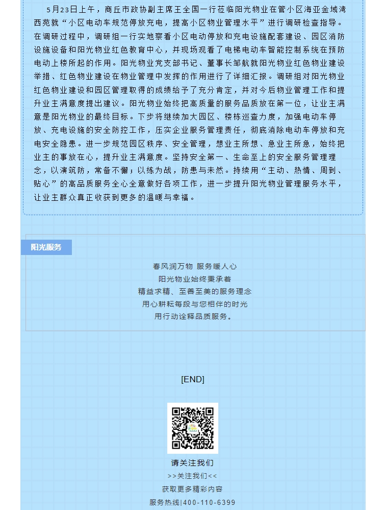 陽光物業(yè)成立于2003年5月,專注物業(yè)服務(wù)行業(yè)20余載,陽光物業(yè)現(xiàn)為河南省物業(yè)管理協(xié)會副會長單位、商丘市物業(yè)管理協(xié)會副會長單位,公司注冊資金1020萬元,陽光物業(yè)連續(xù)多年被河南省及商丘市評為先進(jìn)企業(yè)、優(yōu)秀企業(yè)。